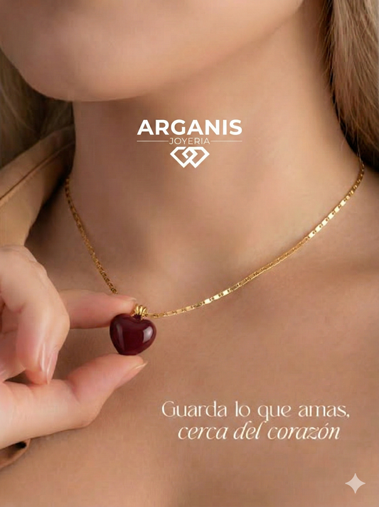 Collar Largo Retro con Corazón Rojo - Acero Titanio PVD